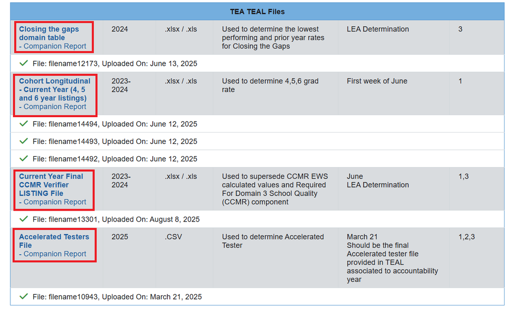 During the Calculation Window: The report displays the specific files currently being used to determine the year’s A-F results. Districts should use this view to confirm that all necessary data is present and accurate.