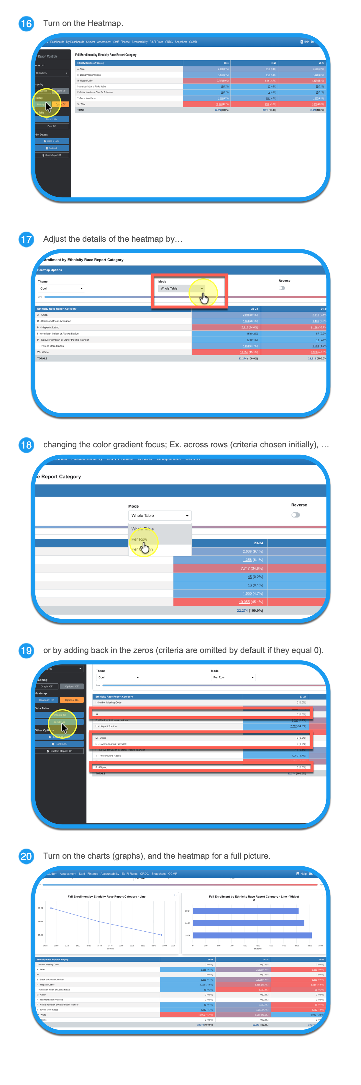 Additionally, you can you can convert the data table from Step 4, into a heatmap. This can assist you with identifying patterns of extreme highs and lows using a gradient color scale.