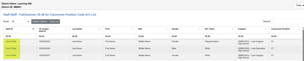 Printing Staff Profiles – “New” functionality similar to the TSDS PDM1-111-001 report.